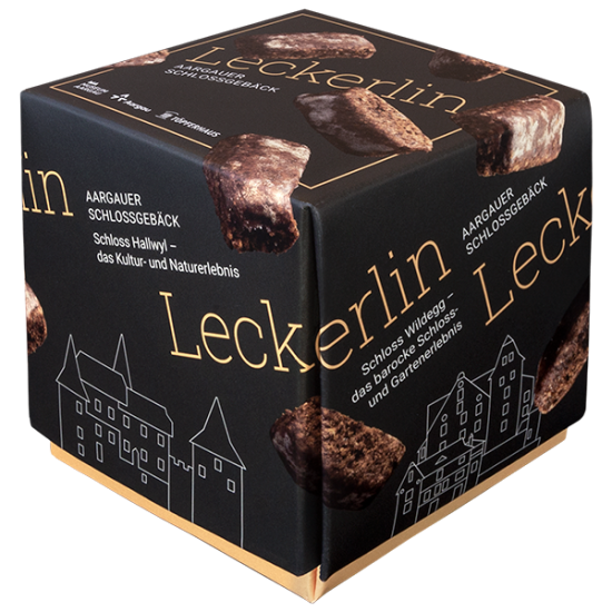 Ein geschichtsträchtiges Gebäck: Mit Verbindung zum Schloss Hallwyl, weil es in Anlehnung an das Rezept der «Frau Anna von Hallweil-Leckerlein» hergestellt wird. So bezeichnet es der Berner Wundarzt Abraham Schneuwly¹ 1621 in seinem Arzneibuch. Er hat es wohl aus dem Arzneibuch von Burkhard III. von Hallwyl aus dem Jahr 1580 abgeschrieben. Damals war das «Leckerlein» oder eben Leckerlin wegen der heilenden Wirkung seiner Gewürze eher eine «Arznei» und ist erst später zum Konditoreigebäck geworden.